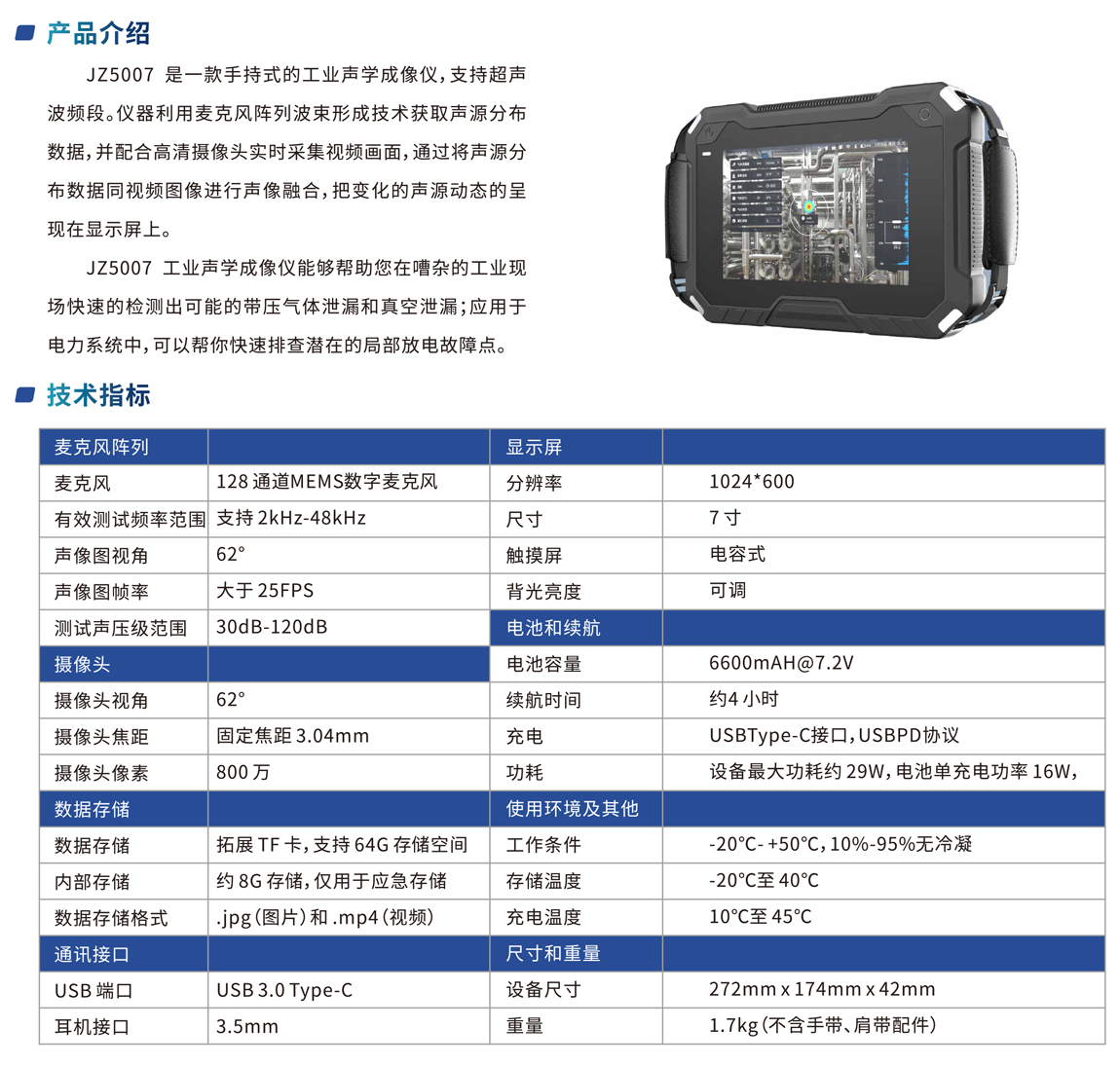 JZ5007是一款手持式的工業(yè)聲學成像儀,支持超聲